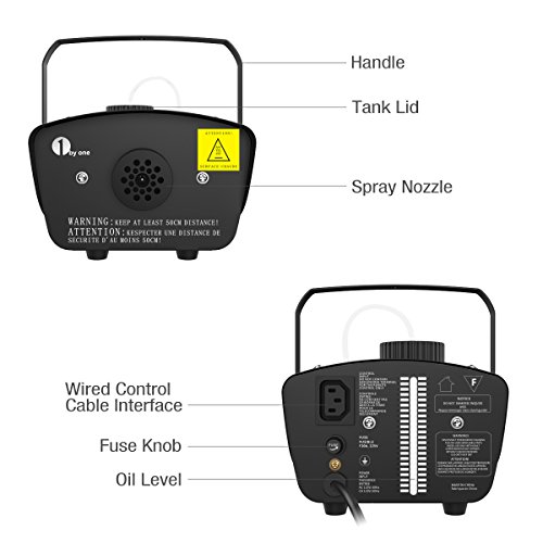 1byone Halloween Fog Machine with Wired Remote Control, 400-Watt Fog Machine, Black