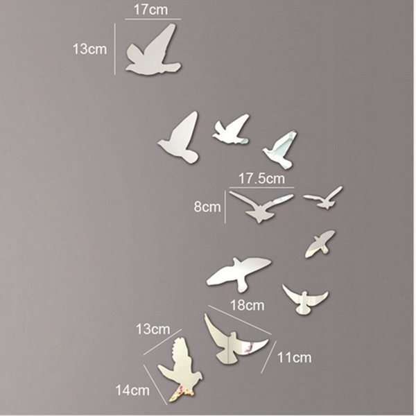 1x 11pcs DIY Birds Acrylic Wall Stickers