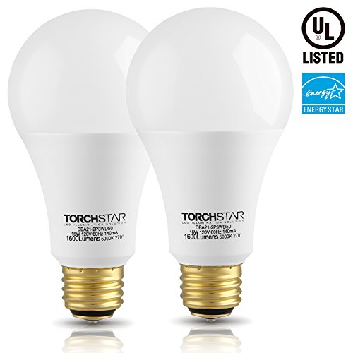 3-Way 40/60/100W Equivalent LED A21 Light Bulb, ENERGY STAR + UL-listed,5000K Daylight, E26 Medium Screw Base, 3-way Table Floor Lamp Fixture, Pack of 2