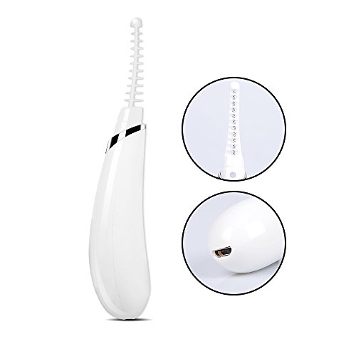 Vivifast Electric Heated Eyelash Curler Eye Lashes Curling Tool Enhancer Pen Electronic Comb Professional Long Lasting Natural USB Rechargeable (White)