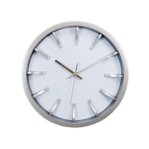 Kiera Grace Watch Wall Clock, 12-Inch, 2-Inch Deep, Silver with White Dial