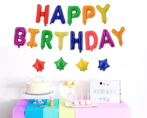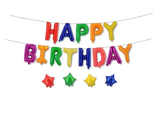 -. Feature : HAPPY BIRTHDAY BALLOONS: High quality aluminum foil balloons and auto-seal, no need to worry about leak, last for long time / Measurement about 16 inches of birthday foil balloon, includes 13 independent alphabet letters, 4 mylar foil star balloon, a string included for you to hang the balloons, also a straw to blow up the balloons is included / This Happy birthday banner balloons were not attached to each other and suitable to inflate with helium or air, note it can't float with helium or air, so you can use the string to hang them to the wall. / Please inflate the balloons slowly until 90% filled and keep away from fire, because of the thermal expansion( the straw and string are INCLUDED ) / Happy birthday banners for decorating the girls, babies, kids, boys, adults birthday party, this lovely Happy birthday Mylar letter balloons will make your family happy