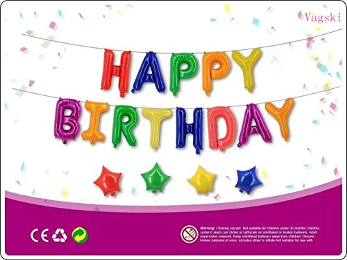 -. Title : Vagski Colorful Happy Birthday Balloons Banners for Girls Party Birthday Decorations Baby Shower Decor 16 Inch (17*Balloons) HF02Z