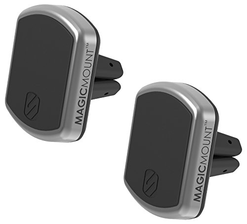 Magic Mount PRO VENT is a multi award-winning, innovative magnetic mounting system, which adds more powerful magnets with optional colorful trim rings. This magnetic mounting system conveniently mounts smartphones, tablets and other mobile devices to a wide array of surfaces. Just hover your device near the magnetic surface and it instantly locks securely in place. The sleek cradle-free design works perfectly with larger devices and allows you to position your screen horizontal, vertical, angled or circular for optimal viewing. This vent mount is the perfect on-the-go solution within the Magic Mount family. Not only does it easily slide from vent to vent, this mount also doubles as a kickstand. If you're always on-the-go or traveling, use this vent mount in your rental car or airline tray by day, and your nightstand or desk by night.Feature