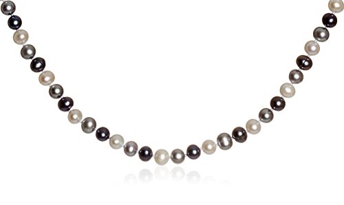 Beautiful Genuine Freshwater Pearls 6-7mm Necklace 18" with Sterling Silver lobster lock. Each Necklace has alternating White, Greay and Peacock color pearls to create an ombre effect.
