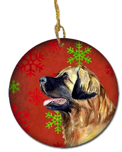 Caroline's Treasures LH9348-CO1 Leonberger Red Snowflake Holiday Christmas Ceramic Ornament, Multicolor