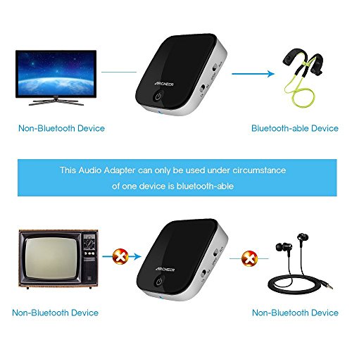 Bluetooth TRANSMITTER + RECIEVER: One portable adapter to use as either transmitter or receiver, one button operation to switch between RX and TX. As a Bluetooth transmitter, it enables you to transmit the audio from your TV or iPod wirelessly to Bluetooth headphones or speakers. As a Bluetooth receiver, it allows you to play the music from your phone or tablet to wired home stereo system.