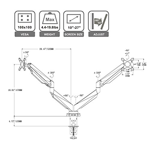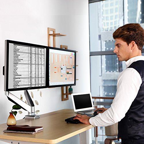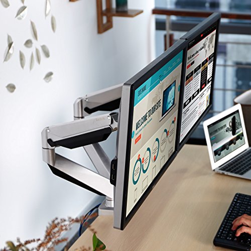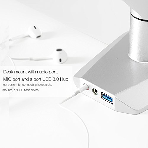 -. Binding : Electronics -. Brand : Loctek -. Color : Silver -. EAN : 6625326266318 -. Feature : Aircraft-grade aluminum arm, 360º horizontal free rotation. with audio port, MIC port and a port USB 3.0 Hub / Luxus Design made of High quality aluminum / Tilt & swivel function, good solution to cervical vertebrate fatigue, swivel out a healthy body. Tilt angle: -90 to 15 degree. Swivel: -90 to 90 degree / VESA mounting pattern: 75 x 75 or 100 x 100. DO NOT FIT FOR Apple Thunderbolt Display and Apple iMAC All In One / Fits these sizes of monitors: 10-27 inches. Supports monitors weighing 4.4-19.8 lbs -. Label : Loctek -. Manufacturer : Loctek -. Model : D7D -. MPN : D7D -. PackageQuantity : 1 -. PartNumber : D7D -. ProductGroup : Personal Computer -. ProductTypeName : COMPUTER_ADD_ON -. Publisher : Loctek -. Size : dual arm -. Studio : Loctek -. Title : Loctek D7D Dual LCD Arm Monitor Mount for 10''-27'' Computer Screen Heavy Duty Swivel Desk Mounts Height Adjustable Gas spring