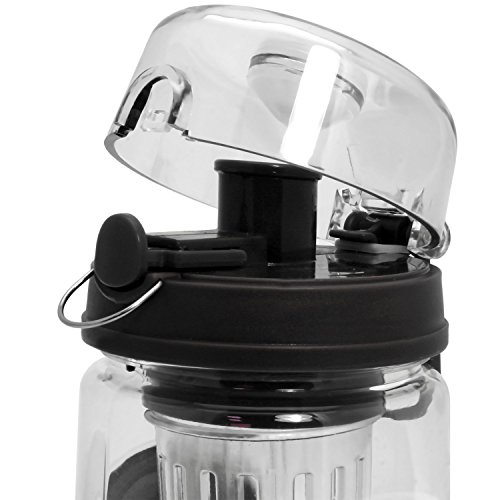 CampTeck 1 Litre 1000ml Fruit Infuser Water Bottle (BPA Free Tritan Plastic) with Leak Proof Lid + Lock & Carry Handle