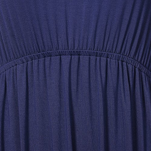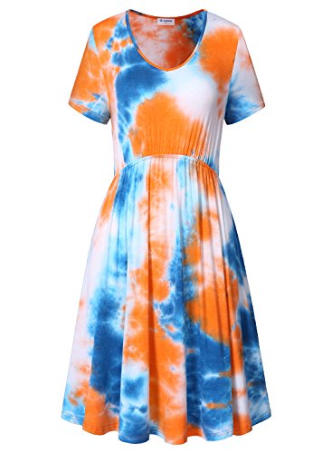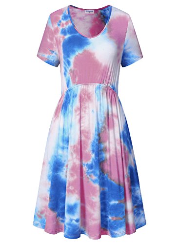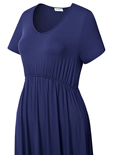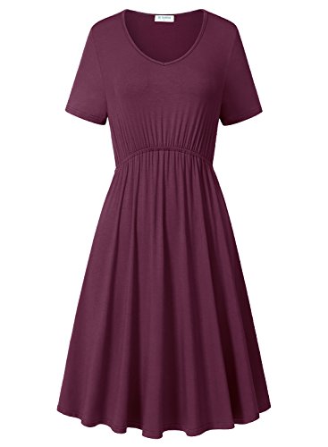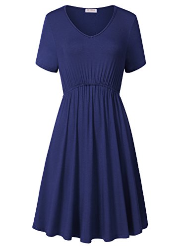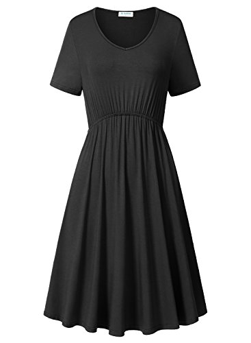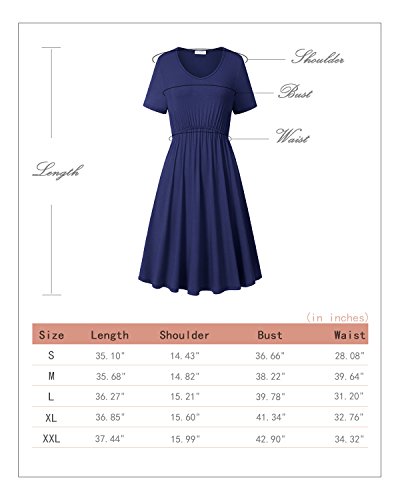 Bulotus Women's Casual Short Sleeve V-Neck Elastic Waist Fit and Flare Midi Cotton Dress Features: V-Neck