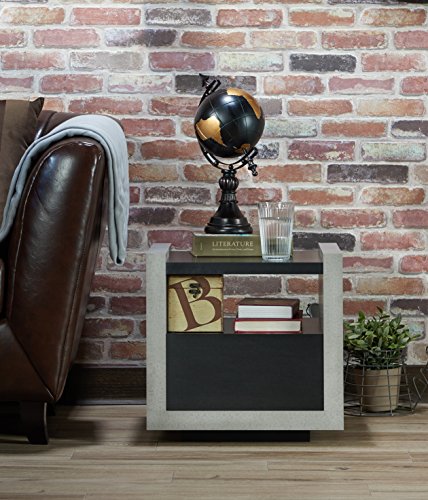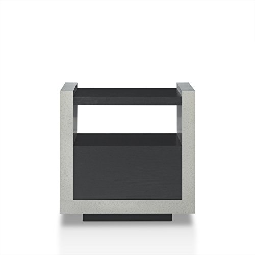 HOMES: Inside + Out FGI-1780C1-ET Fresna Shelf Storage Drawer End Table, Cement/Black