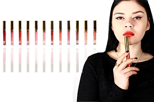 Lip Gloss -12 Colors Set Waterproof Long Lasting Madly Matte Lip Gloss Liquid Lipstick Beauty Makeup Cosmetics ( Set of 12PCS) By Rejawece