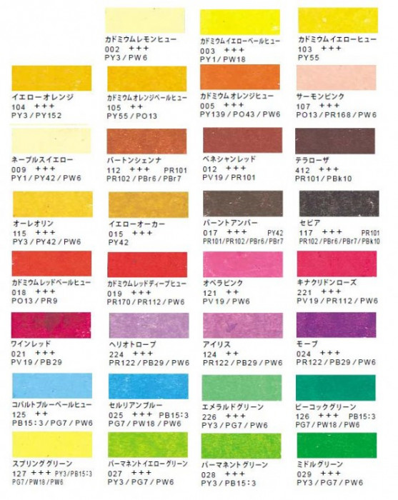 高級顔料を使用していますので発色・耐光性に優れています。均一性・着色性にも優れています。角型形状で、面塗りから線描まで対応できます。