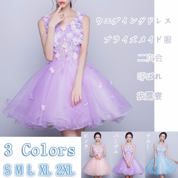 ■商 品 名 :ブライズメイドドレス ショートドレス プリンセスドレス 締め上げタイプ 花嫁 ウェディングドレス 大人 大きいサイズ カラードレス 花嫁の介添えドレス 披露宴 結婚式 お呼ばれ 二次会 パーティー 演奏会 発表会 ドレス おしゃれ ピンク パープル ブルー da001n1