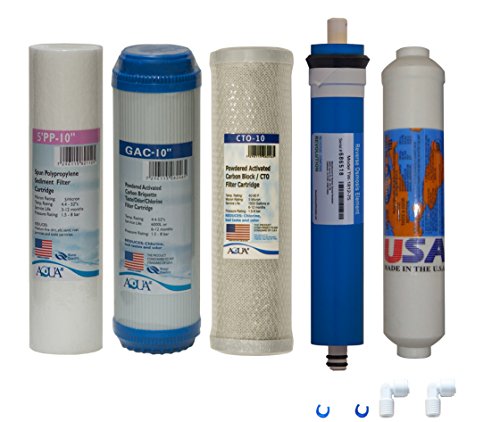 5 stage Reverse Osmosis Replacement Filter set with 75 GPD membrane, inline carbon postfilrer (USA made) and QC fitting