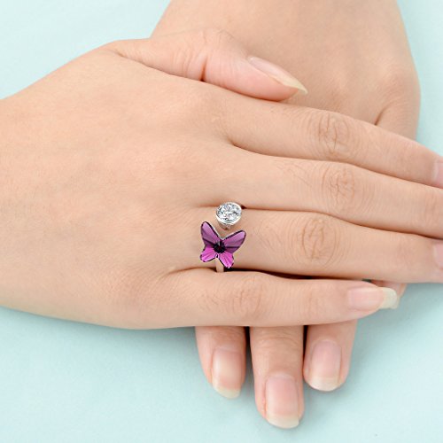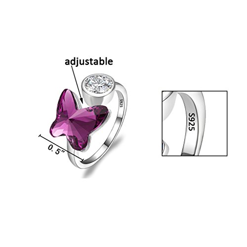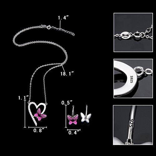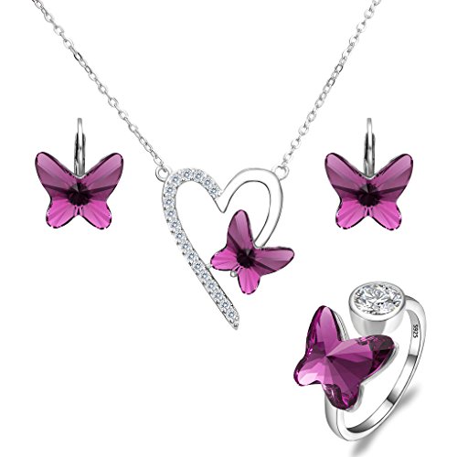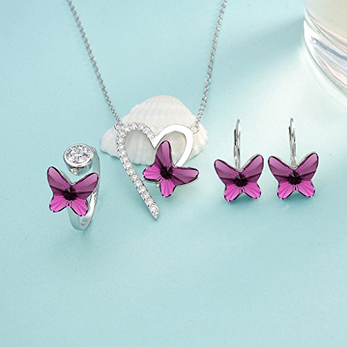 Swarovski® Crystals Color: Purple, CZ Color: Clear; Necklace's Length: 18.1in-19.5in, Pendant Size: 0.8in by 1.1in; Earrings' size: 0.4in by 0.5in, Ring Size: Adjustable; Total weight: 13g