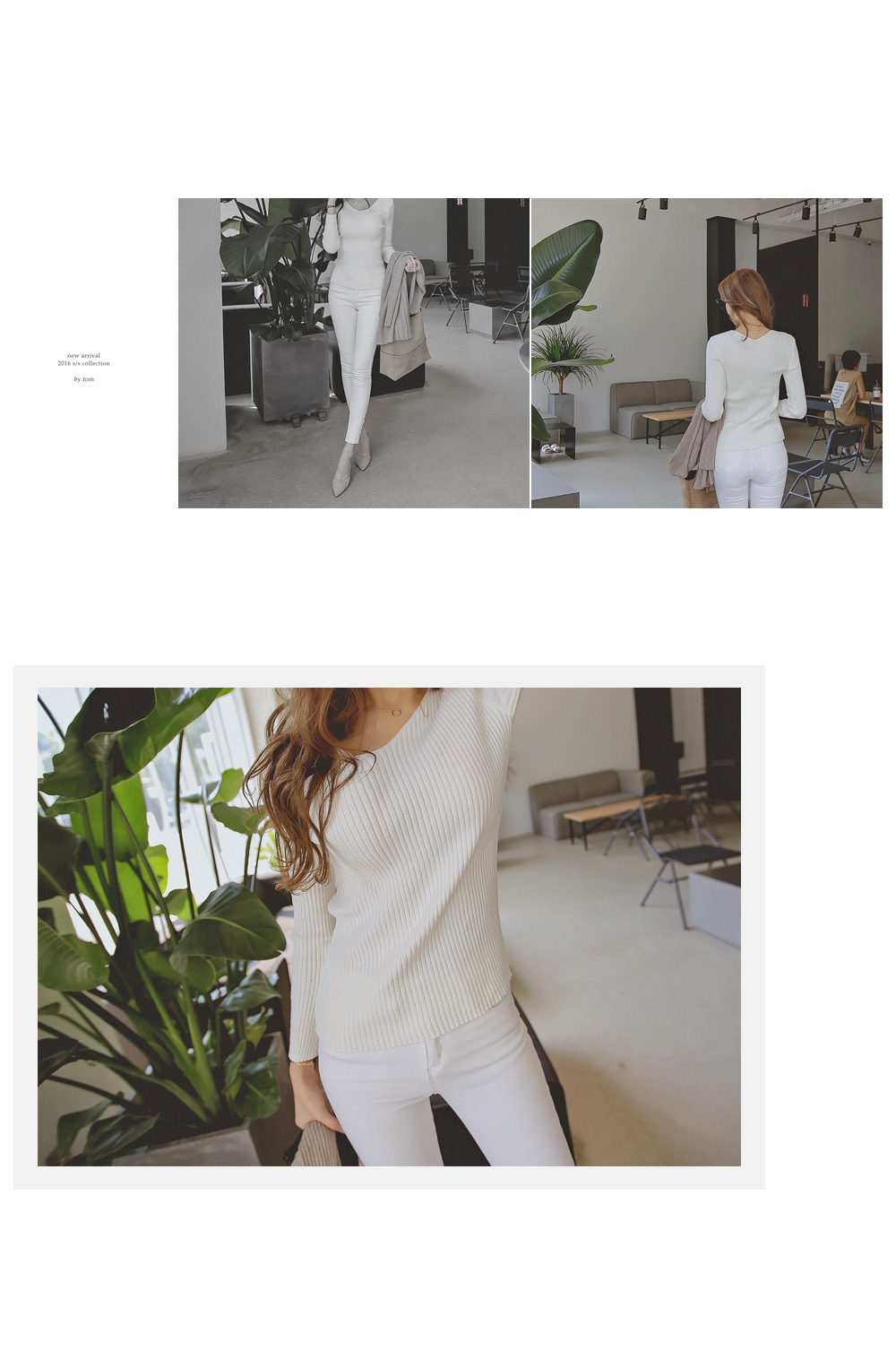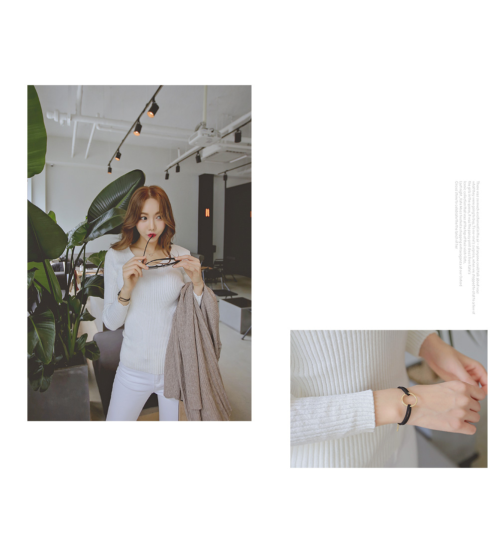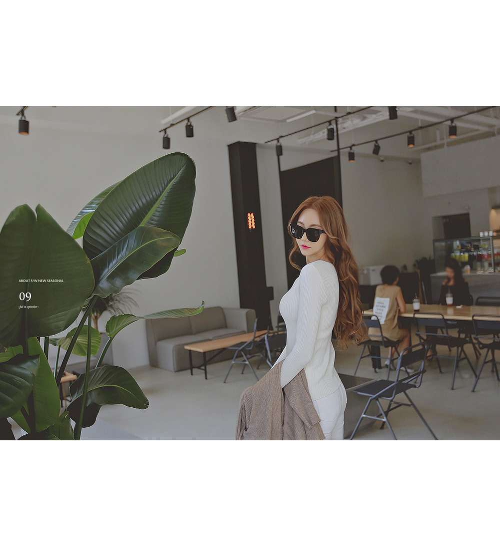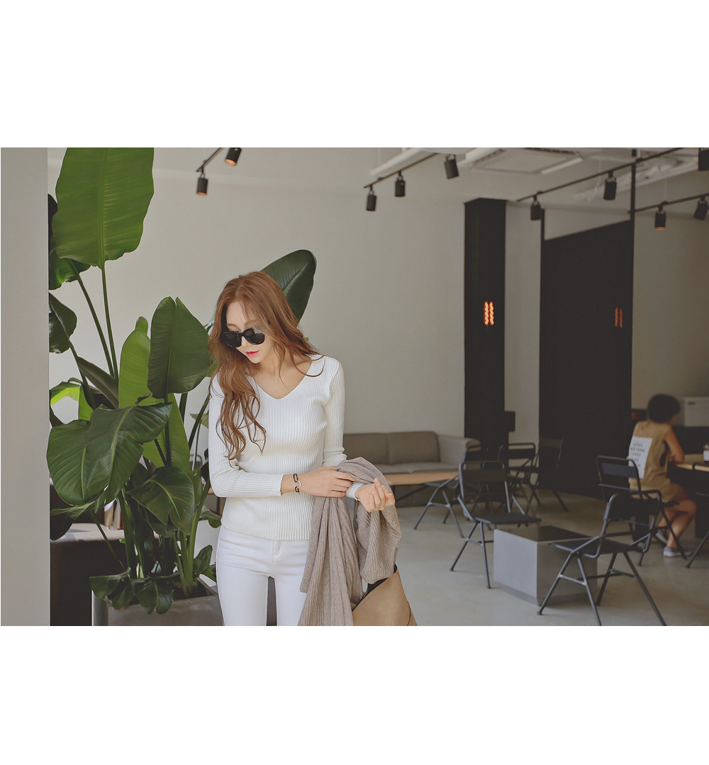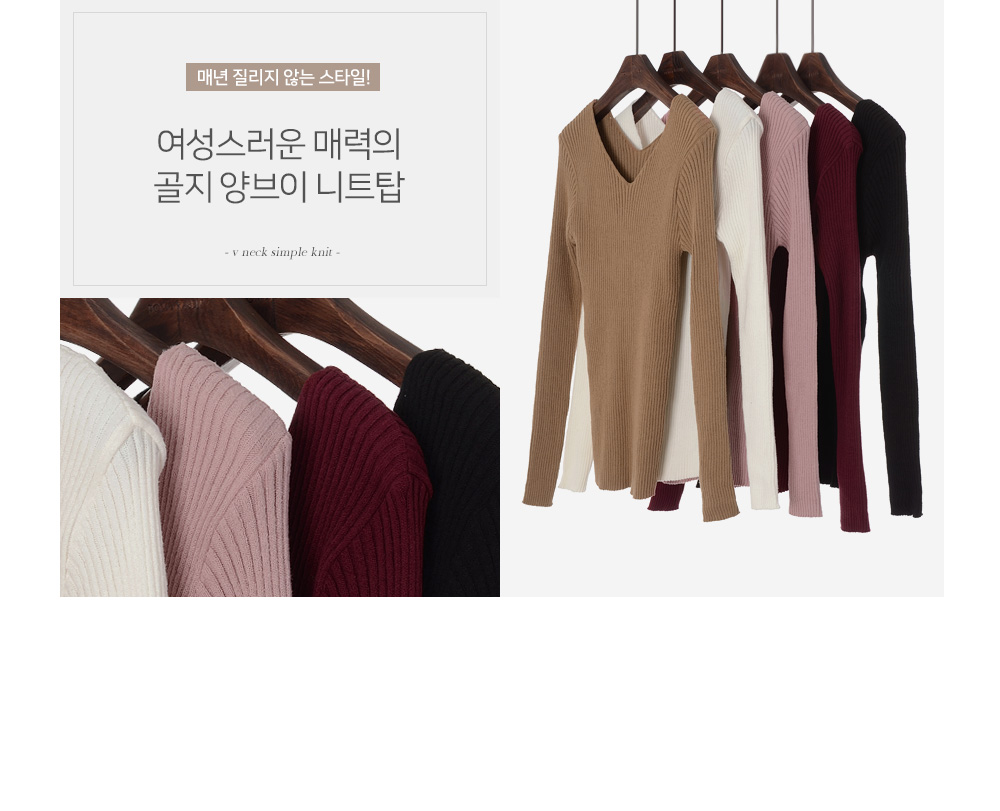 여성스러운 매력의 골지 양브이 니트 티셔츠 인데요.