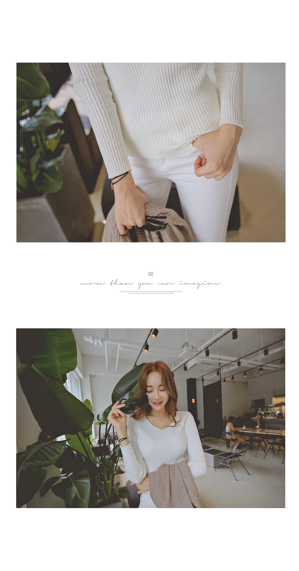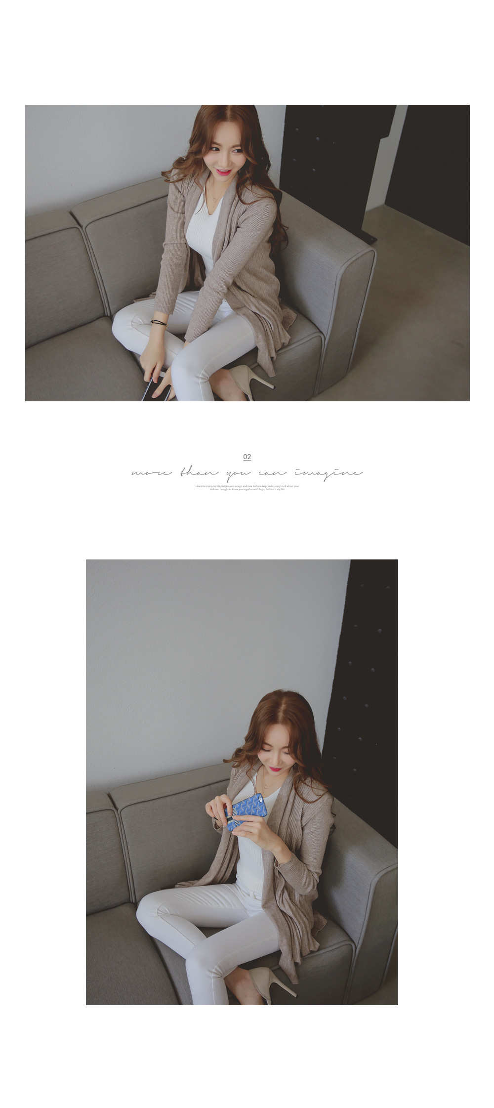 세로 골지 짜임으로 신축성이 좋으며, 날씬해 보이는 효과를 준답니다.