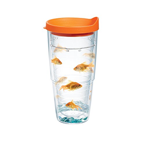 -. Title : Tervis Tumbler, Goldfish, 24 oz with Travel Lid, Clear