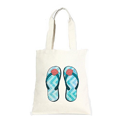 Women's Seashell Flip Flops Cotton canvas eco shopper bag.