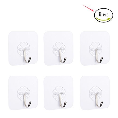 Wall hooks for Kitchen,bath Towel Hooks,bathroom wall hooks,keys Transparent Sticky Glue Hooks,Refrigerator Door wall hook (6 Pack)
