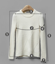 尺码 ①衣长 ②胸围 ③肩宽 ④下摆围 ⑤袖长 ⑥袖臂围 ⑦袖口围