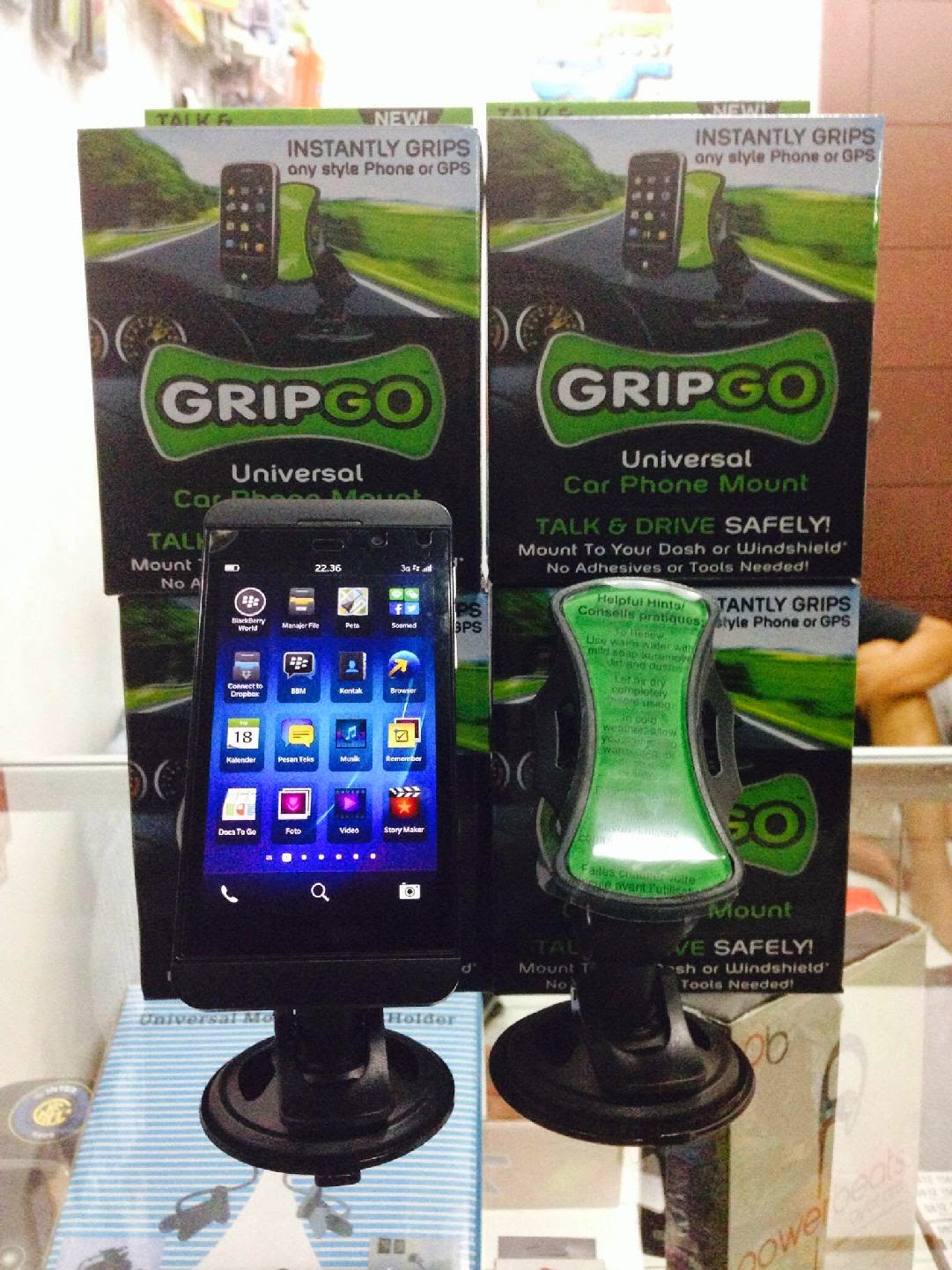 GripGo adalah sebuah perangkat yang berfungsi sebagai alas tempat meletakkan ponsel, tablet, ataupun piranti GPS pada mobil anda. GripGo dilengkapi perekat untuk menempelkan ponsel tanpa membuat lecet bodi ponsel anda. Tinggal anda letakkan ponsel anda, GripGo akan membuatnya merekat kuat tanpa takut terguncang ataupun jatuh saat mobil terguncang.