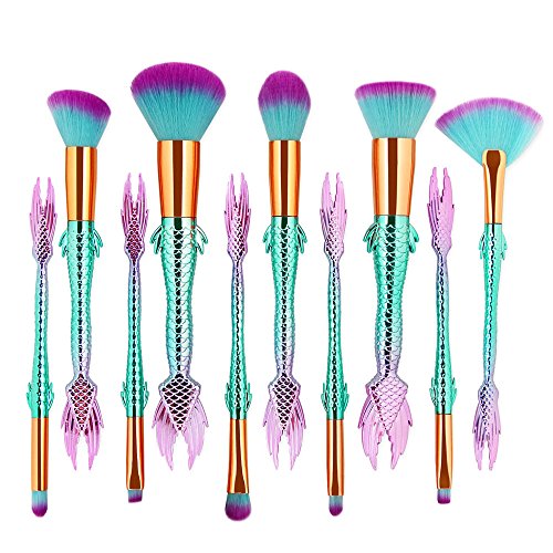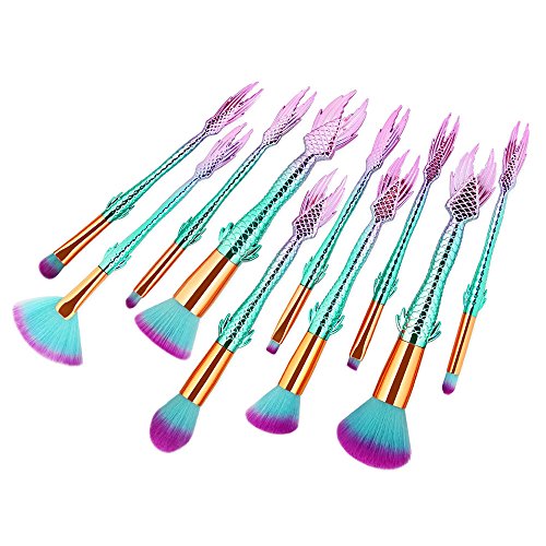 Stylish Makeup Brush Set - This 10pcs mermaid makeup brushes set will be your ideally chosen, it is suitable for professional and individual. Also can be gave as a gift to your friends or families.