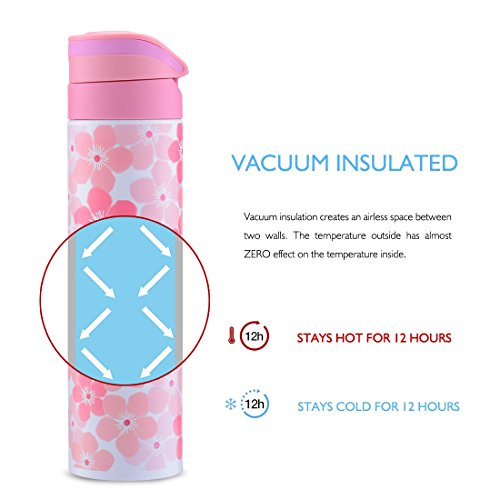 ✔Vacuum Insulated - The 12 ounce water bottle is double wall vacuum insulated, keeping drinks cold for up to 24 hours