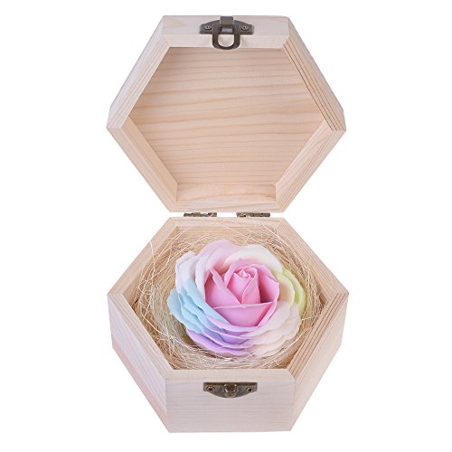 Kloud City Creative Petal Flower Soap Artificial Rose Romantic Soap in a Decorative Wooden Hexagonal Gift Box for Valentine’s Day Mother’s Day Birthday Gifts