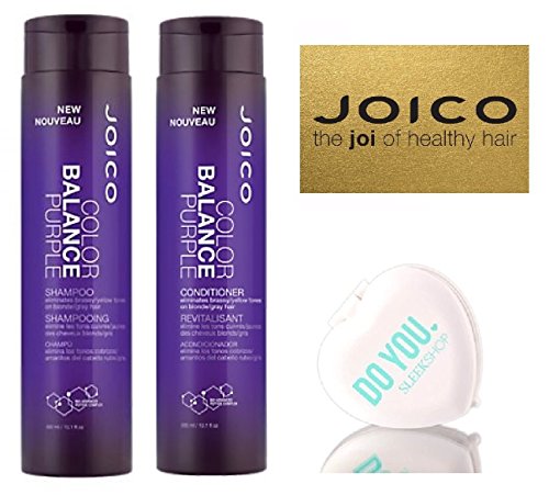 Joico Color Balance PURPLE Shampoo & Conditioner DUO Set (with Sleek Compact Mirror) (10.1 oz / 300ml - Retail DUO Kit)