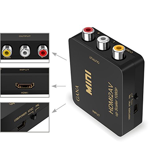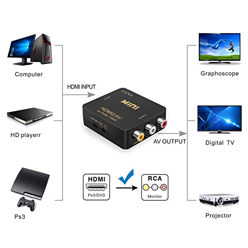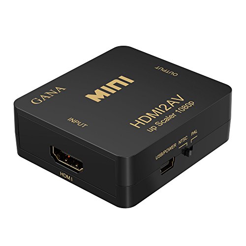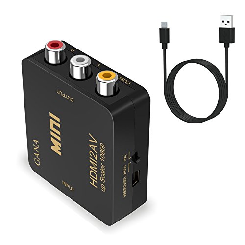 HDMI to RCA, GANA 1080P HDMI to 3RCA CVBS AV Composite Video Audio Converter Adapter Supports PAL/NTSC with USB Charge Cable for PC Laptop HDTV DVD-Black