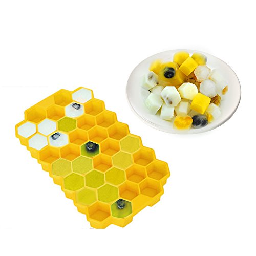 Bella Amazing- Honeycomb Ice Tray, Set of 2 Novelty Geometric honey bee ice cubes, Silicone Ice Cube Trays Small. Create Ice Molds for Drinks, Food, Herbs, Spices, and More. Purple and Yellow