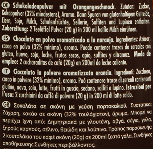 -. Feature : Schokoladenpulver mit Orangenaroma zur Zubereitung einer heißen Schokolade / mind. 32% Kakao, schwach entölt / Intensiv schokoladig, mit frischem Orangengeschmack! Einfach köstlich! / Die Trinkschokolade ist verpackt in einer schönen, geprägten Metalldose / Monbana zählt zu den bekanntesten französischen Chocolatiers
