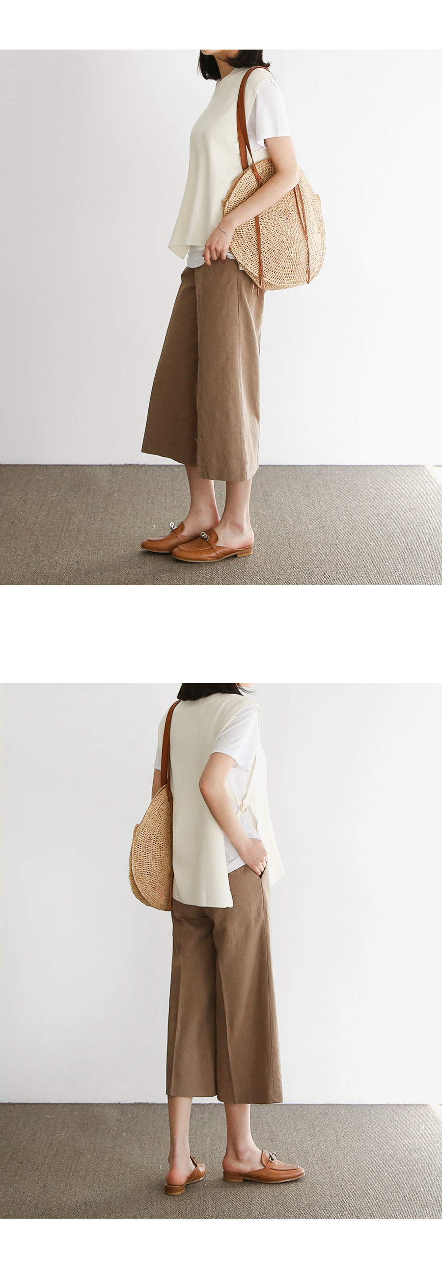 이번 시즌 주목해야 할 경쾌한 기장감의 린넨 팬츠입니다