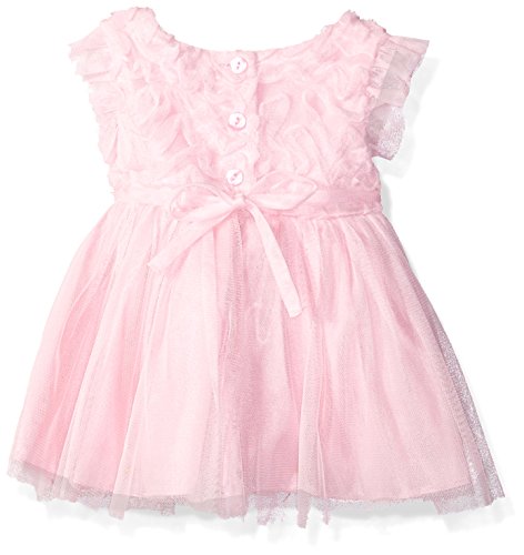 Short sleeve pink soutache floral bodice special occasion dress with layered tulle mesh skirt and rhinestone waist and functional buttons on back for closure