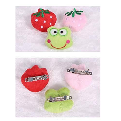 -. Title : Stock Show Cute Pet Dog Hair Clips Adorable Plush Strawberry Cartoon Bee Frog Shape Design Puppy Supplies Hair Grooming Accessories for Pets and Girls, Set of 4