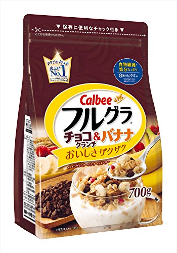 オーツ麦、ライ麦、玄米などの穀物を丁寧に焼き上げたグラノーラにサクサクのチョコクランチとバナナをトッピング! 子供から大人までみんなが大好きな味わいをお楽しみください。食物繊維・鉄分たっぷり、1食分50gで一日の必要量の1/3の8種のビタミンを摂取できます。700g入ったお徳用サイズです。