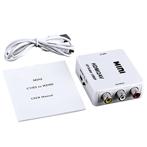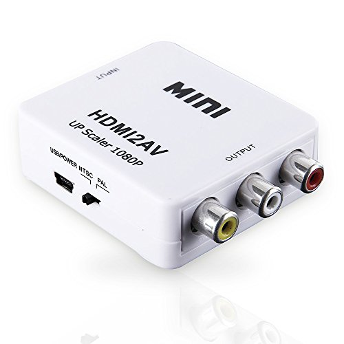 HDMI to AV 3RCA CVBS Composite Video Audio Converter - 1080P HDMI Video Converter Supporting PAL/NTSC with USB Charge Cable for TV PC PS3 Blue-Ray DVD, White