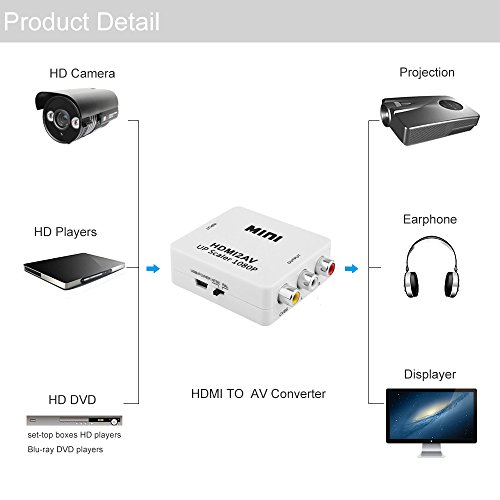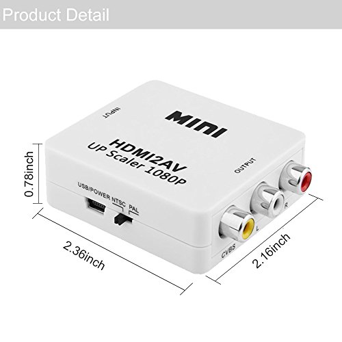 HDMI to AV 3RCA CVBS: Converting high-quality HDMI video signal to AV composit video signal normal or CVBS signal (standard-definition 480i, 576i), available for TV, VHS VCR, DVD recorders, etc. Support HDMI input from 480i to 1080P