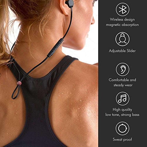 ☆ Bluetooth Kopfhorer mit Eingebauten MAGNETEN und Ergonomischem In Ear Design, Sitzt Gut und Sicher ☆: Stecken Sie die Kopfhorer zusammen mit Magneten um sie nicht zu verlieren. Tragen Sie sie wie eine Kette um den Hals mit optimaler Passform die zu Ihrem Sportoutfit passt. Gemutliches In-Ear-Design lasst Musik weiterlaufen beim Bewegung und Sport. Wechselbare und weiche Ohradapter sowie Ohrhaken in verschiedenen Grossen reduzieren Vibrationen von Ohrhorer und sorgen fur Stabilitat in Bewegung