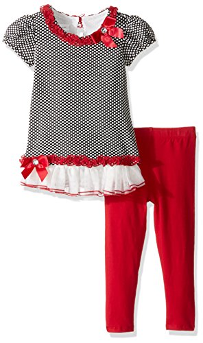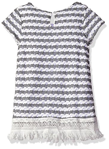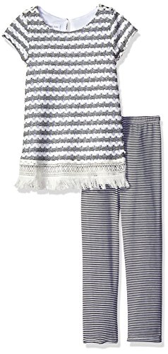 Bonnie Jean Little Girls' Crochet Knit Fringe Dress with Stripe Leggings, Black/White, 6X