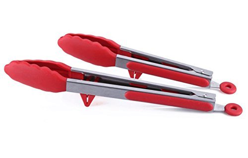 iNeibo Kitchen Premium Silicone Tongs - Pack of 2, 9 and 12 -Smart Locking Clip - Heat Resistant, Food Grade - Handy Utensil For Cooking, Serving, Barbecue, Buffet, Salad, Ice, Oven (Red)