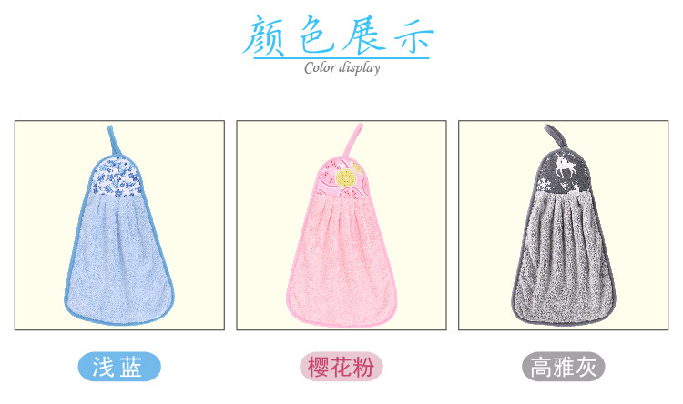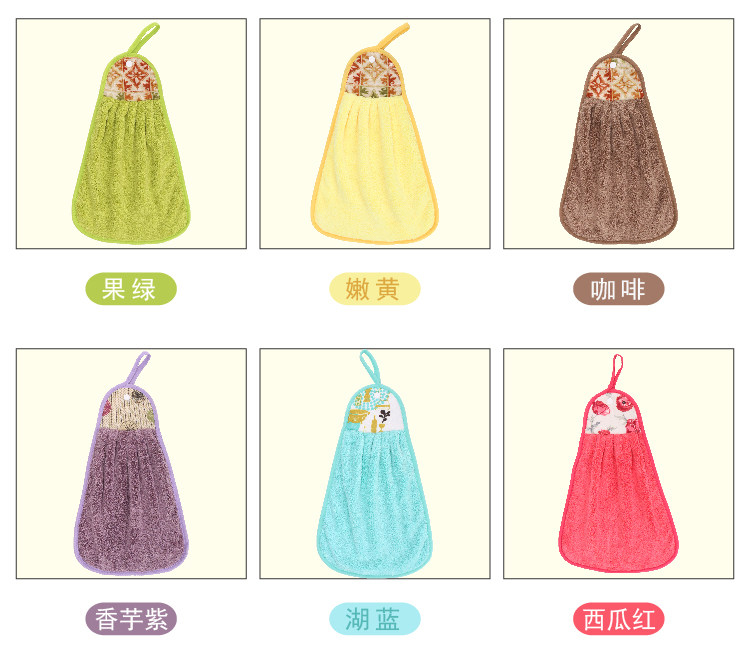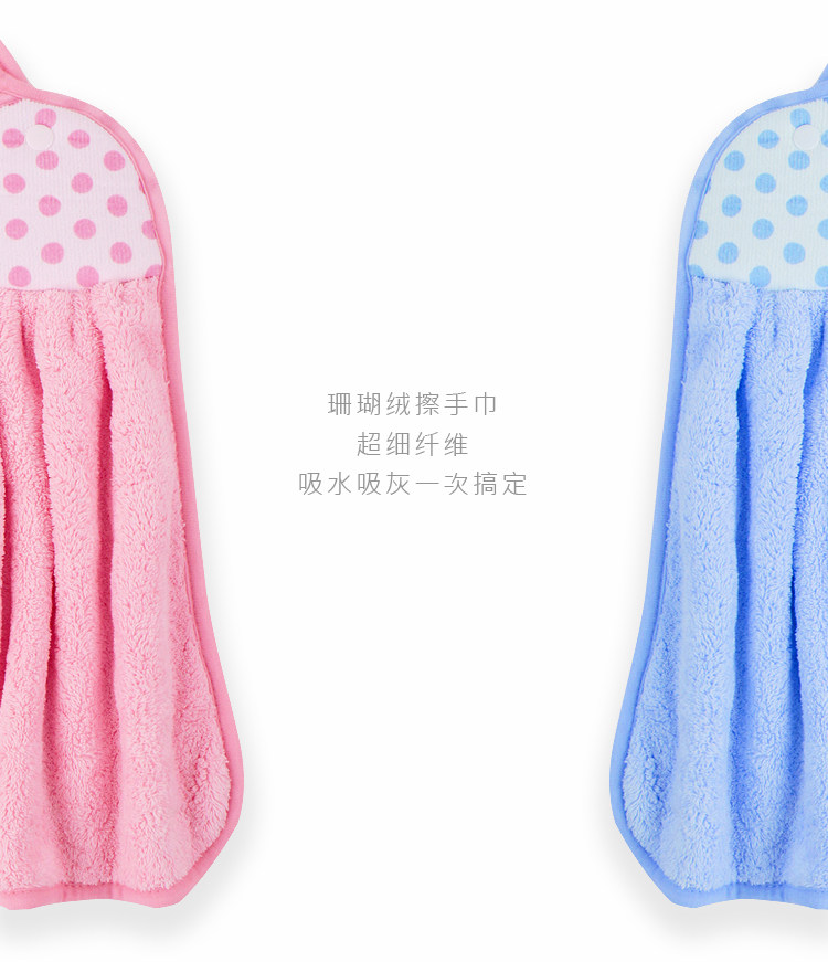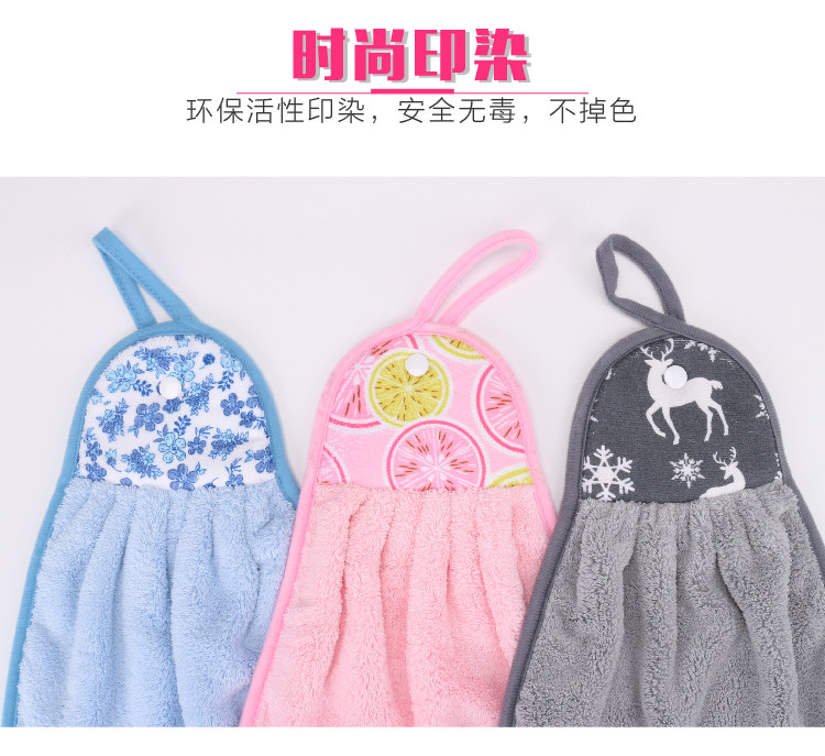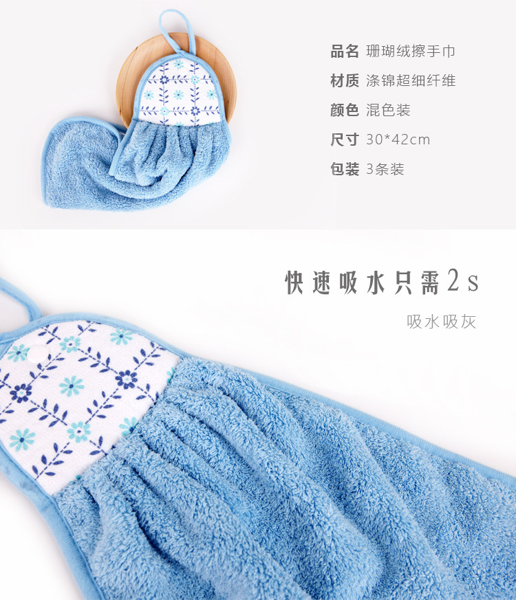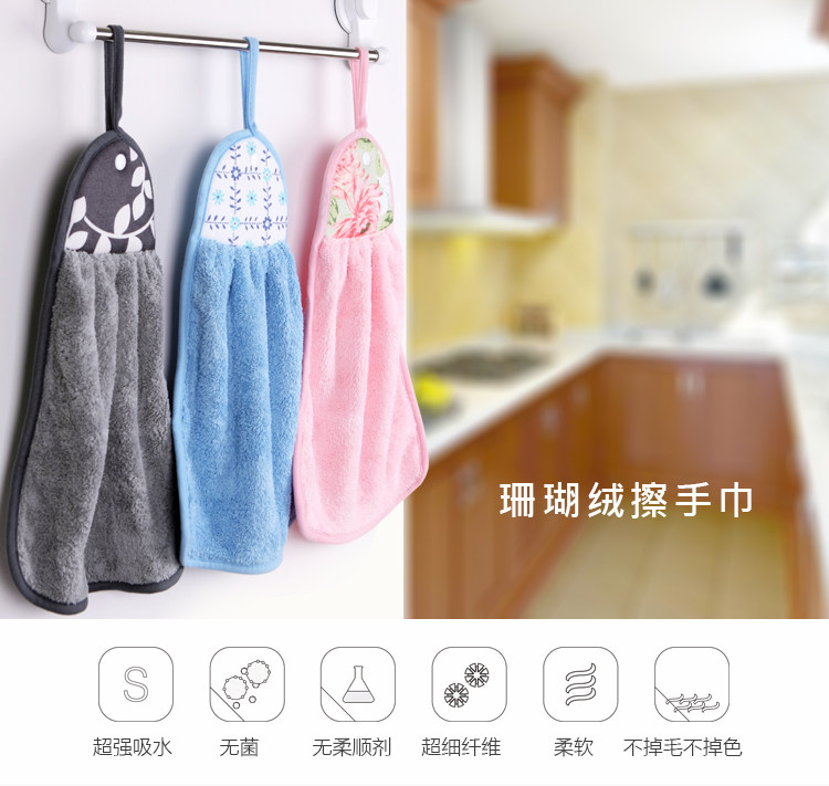 3条厨房卫生间浴室珊瑚绒擦手巾可挂式搭扣吸水加厚毛巾抹布