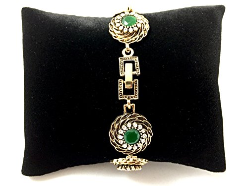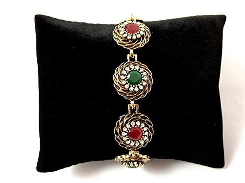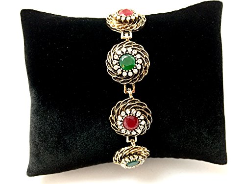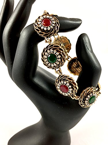 Turkish Vintage Inspired Bohemian Ethnic Red/Green Stones Carved Statement Bracelet