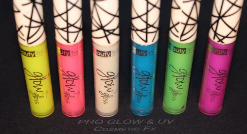 -. Binding : Misc. -. Brand : GloMania -. Color : glitter, clear, white, opaque, silver -. EAN : 5060231977002 -. Feature : GLOW in the DARK and UV Reactive Lip Gloss. Smooth application goes on soft like a gloss. Goes great with our Neon Lipsticks! / Vibrant Colors available in: GLITTER/CLEAR, BLUE, PINK, GREEN, YELLOW, & LILAC / GLOWS IN THE DARK & reacts brilliantly under UV lights! / We consider this a theatrical lip gloss, which means it may not be suitable for every day use. / GLOMANIA USA is NOT AFFILIATED with any other cosmetic company on Amazon. -. Label : Beauty Treats -. Manufacturer : Beauty Treats -. NumberOfItems : 20 -. PackageQuantity : 1 -. ProductGroup : Beauty -. ProductTypeName : BEAUTY -. Publisher : Beauty Treats -. Studio : Beauty Treats -. Title : GLITTER GLOW in the DARK Lip Gloss, Rave Lip Gloss, Black Light, UV Reactive