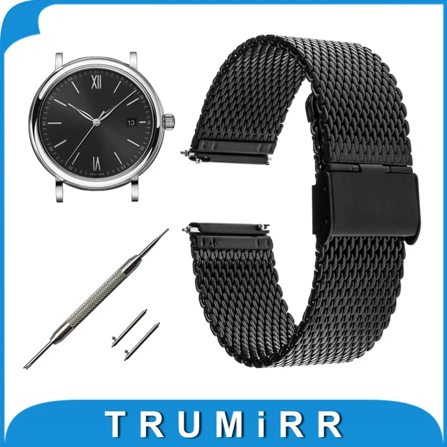 | [해외] 20 미리메터 22 미리메터 milanese 손목 + 빠른 릴리스 핀 iwc 시계 밴드 메쉬 스테인레스 스틸 스트랩 손목 벨트 팔찌 블랙 실버 |