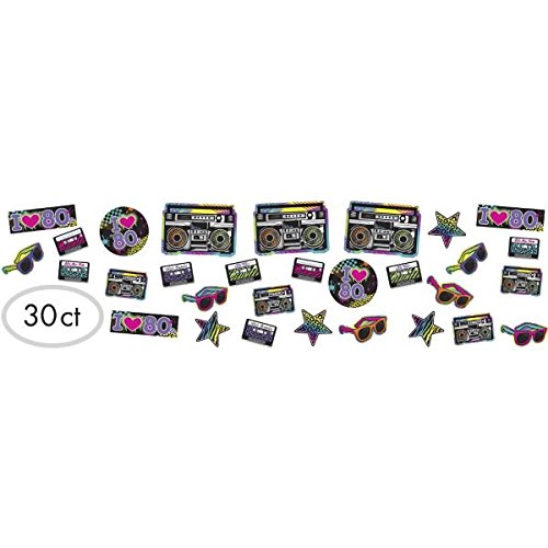 - Features double-sided, high gloss printed images of neon sunglasses, boom boxes, cassette tapes, stars, ""I ♥ the 80s"" signs and more.