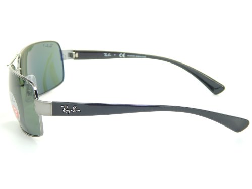 Ray-Ban ® RB3379 men's sunglasses are a monel constructed navigator with a contoured, rectangular shape and a wrapped fit. Each of the nose pads and propionate plastic temples are engraved with a Ray-Ban ® signature logo as well as an embossed Ray-Ban ® signature logo on these sunglasses. RB3379 Ray-Ban ® sunglasses are available with polarized lenses.Feature
