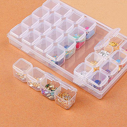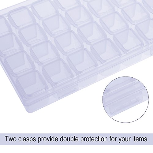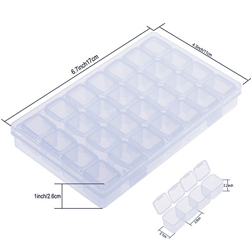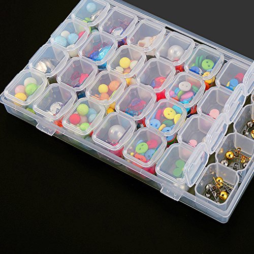 2 Pack 28 Slots Diamond Embroidery Box with 10 Plastic Bags , Adjustable Storage Box Bead Case for DIY Craft, Transparent Craft Organizer Sold by Elegant House